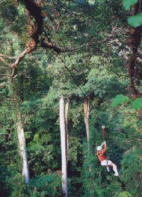 There are two adventure trails available. The first involves air trekking between three platforms, crossing the postman's bridge which spans 10m (32ft) across an abyss, and abseiling 20m(65ft) down a huge boulder. Starting at the base of Gunung Raya you will proceed a one-kilometre hike up the mountain. Then following a trek through the jungle which will bring to base camp where the equipment is stored and where while being geared up, briefing is given on the trek and also on all the safety devices, equipment and harnesses used. |