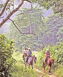 | Horse-riding Once a place of impenetrable jungle, Langkawi's rugged mountains are slowly being opened up by growing network of carefully carved horse trails that allows visitors hot to trot, through some of Langkawi's superb jungle interior. Everything from pony rides, horse familiarisation courses and beach rides to five hour jungle rides through the lovely forest at the foot of the spectacular 708 metres Gunung Mat Cincang. Great for families and nature lovers, the jungle rides offer an opportunity to showcase Langkawi's best assets - it's remarkable and unspoilt scenery. Location: Burau Bay |