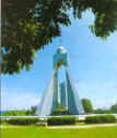 State Monument Just before the State Secretariat is the serene and lovely State Monument with a sweeping arch, reflecting pools and gold inscriptions on gray Selangor granite. It is a favourite location for shutterbugs and tourists because of its Picturesque setting. |